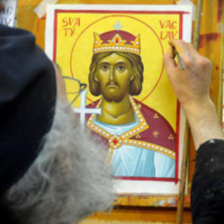 S milostí Boží pokračují i nadále přípravné schůzky naší dílny na blížící se seminář pravoslavného ikonopisectví v Praze. Na aktuálním setkání jsme se věnovali malbě tváře sv. Václava.