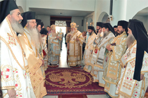 radost a duchovní potěšení naplňuje srdce nás všech, kteří se účastníme této slavnostní mnohočetné archijerejské svaté liturgie sjednocení, jíž předsedají nejvyšší představitelé řecké a rumunské pravoslavné starostylní církve, arcibiskup Kallinikos a metropolita Vlasios.