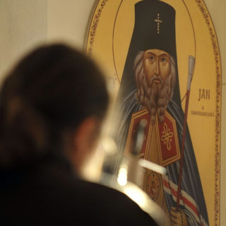 Sváteční bohoslužby v chrámu sv. Jana Sanfranciského v Jezdovicích v roce 2012.