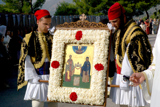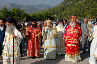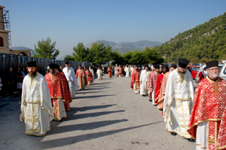 Následující den v úterý ráno v 6.00 začala jitřní bohoslužba následovaná slavnostní sv. liturgií, které předsedal biskup Kyprián orejský. Spolu s ním sloužilo všech výše uvedených sedm biskupů, dále desítky kněží, tři diákoni a množství hypodiákonů. Přítomno bylo opět veliké množství věřících, zástupci našich monastýrů, farností a církevních společenství z Řecka a ze zahraničí.