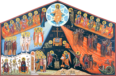 Ve 25. kapitole Matoušova evangelia se mluví o „království“ a o „věčném ohni“. V této perikopě, která je určená ke čtení na uvedenou neděli, „království“ označuje Bohem určený cíl člověka. „Oheň“ je „připraven“ pro ďábla a jeho anděly (démony), nikoliv protože to chtěl Bůh, ale protože nečiní pokání. „Království“ je podle Boží vůle připraveno pro věřící. „Království“ (tedy nestvořená Sláva) označuje ráj, „oheň“ (věčný) označuje peklo (věčný oheň) (Mt 25,46). Na počátku historie Bůh povolává člověka do ráje, do společenství s Jeho nestvořenou Milostí. Na konci historie člověk čelí ráji a peklu. Co to znamená uvidíme později. Předem však uveďme, že se jedná o zcela ústřední téma naší víry, úhelný kámen křesťanství jakožto Pravoslaví.