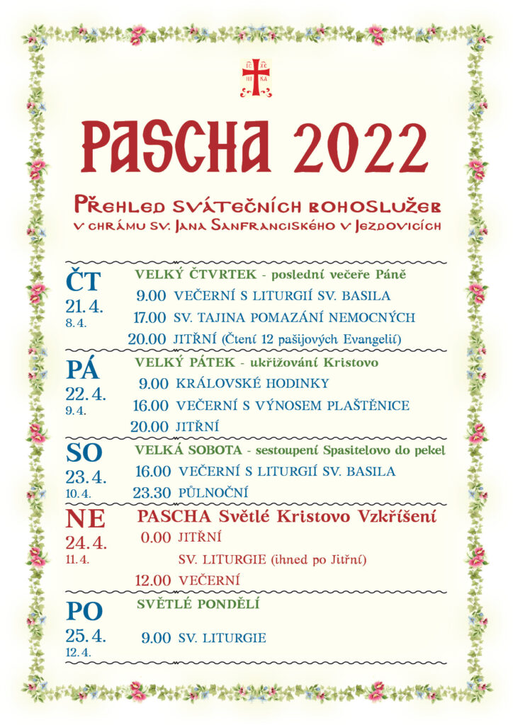 Pascha 2022: Sváteční bohoslužby v Jezdovicích