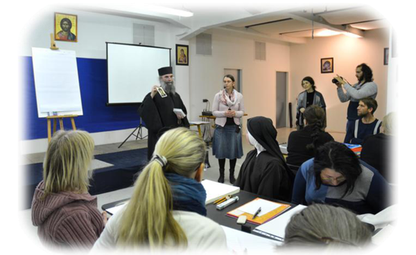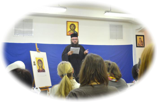Přednášku s názvem „Zázrak, ikona a lidská logika“ přednesl jerodiákon Gabriel, vedoucí naší ikonopisecké dílny. Její obsah účastníkům poskytuje teoretické základy pro nadcházející snažení a také nezbytné pochopení významu spolupráce lidské víry a Boží lásky jak v případě zázraku, tak i v případě ikony.