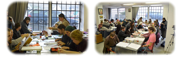 Díky cenné pomoci našeho přítele a krajana Aristeida, který nám poskytl úžasný a vskutku vlídný doprovod, se skupina dostala k večeru do známého a pohostinného sálu uměleckého studia PRAM.