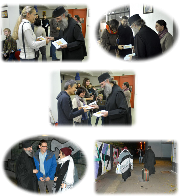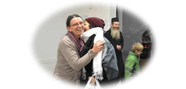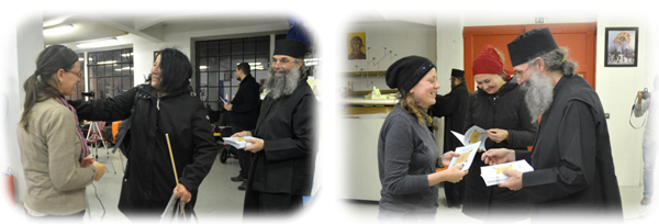 …na rozloučení objímají a rozdávají jim 12stránkový výňatek z odborné publikace „Rajská holubice ikonopisectví“, který do češtiny přeložila presbytera Klára,…