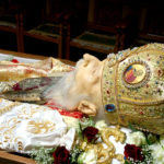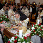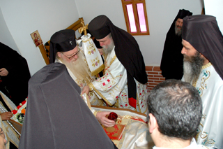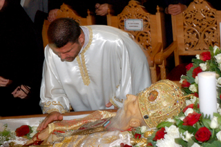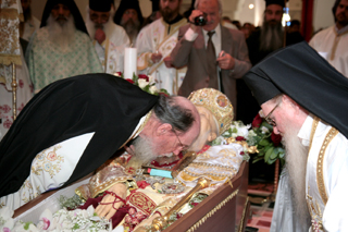 Poté, co se biskupové naposledy rozloučili se zesnulým, byla rakev s jeho ostatky nesena kolem chrámu a uložena do hrobu, připraveného v jedné z bočních kapliček poutního chrámu sv. Kypriána a Justiny. Dále následovalo malé občerstvení a společné posezení v monastýrském archontariki.
