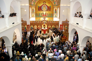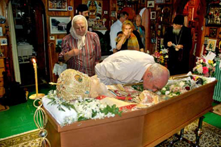 V sobotu 19. 5./1. 6. 2013 byla rakev s pozůstatky přenesena do poutního monastýrského chrámu. Zde v 8.00 začala mnohočetná archijerejská liturgie, po jejímž skončení následoval pohřební obřad. Této významné události se zúčastnili také vzácní hosté ze zahraničí. Za sesterskou rumunskou starokalendářní církev byli přítomni její první představitel metropolita Vlasios, doprovázený biskupy Sofroniem a Dionysiem a jedním knězem. Bulharskou starokalendářní církev zastupoval její první představitel vladyka Fotios, jeden kněz, dva diákoni a několik věřících. Sesterskou Ruskou pravoslavnou zahraniční církev (Synod vladyky Agathangela, část RPZC, která nepřijala sjednocení s moskevským patriarchátem) reprezentoval arcibiskup petrohradský a severního Ruska Sofronij, který přicestoval se zpožděním a stihl pouze pohřební obřad. Z našeho synodu přicestovali ze zahraničí vladyka Michael z Nory ze Sardinie spolu s archimandritou Mariánem, vladyka Auxentios fotikijský z Etny z Kalifornie, o. Ondřej Okerstrom se dvěma monaškami a jedním monachem ze švédska, o. Jeremiáš Cvak z Česka a o. Vladimír Mohorita ze Slovenska.