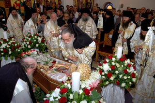 Přítomní byli také samozřejmě biskupové našeho synodu pobývající v Řecku: Chrysostomos christanopolský, Ambrož methonský, Kliment gardikijský a spolu s nimi mnoho kněží. Sv. liturgii předsedal biskup Kyprián orejský, zastupující předseda Posvátného synodu v ohrazení. Jak sv. liturgie tak i pohřebního obřadu se zúčastnil veliký zástup věřících, monachů a monašek, kteří přišli na poslední rozloučení se svým milovaným duchovním otcem a archijerejem Boha Nejvyššího.